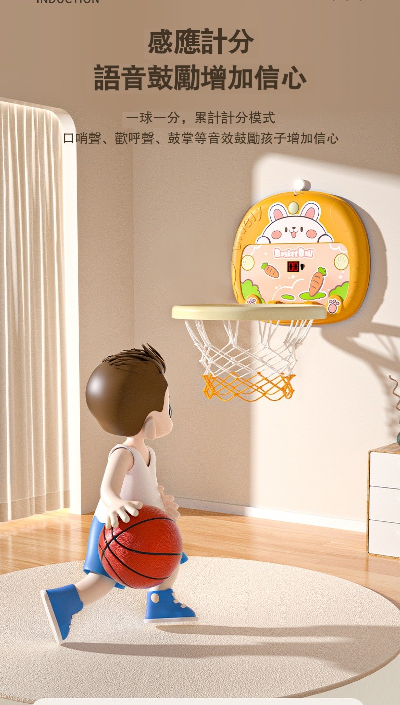 【兒童免打孔智能感應計分籃球板】高度可調✅承重20KG✅語音鼓勵✅便攜收納✅多種玩法✅